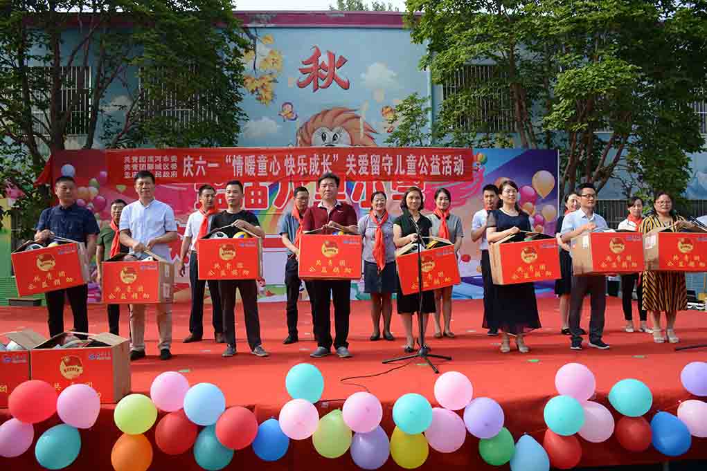 汇聚爱心、传递真情。为了让小朋友度过一个快乐、充实而有意义的六一儿童节,5月30日上午,共青团漯河市委、共青团郾城区委、孟庙镇党委联合漯河市天衡教育基金在孟庙八里小学举办“庆六一”关爱留守儿童公益活动。漯河市天衡机械有限公司总经理、天衡教育基金创始人王华锋参与捐赠活动。郾城区于区长、团市委刘书记、鲁部长出席,孟庙镇党委李书记、区教科体局李局长、孟庙镇八里小学校长陪同。