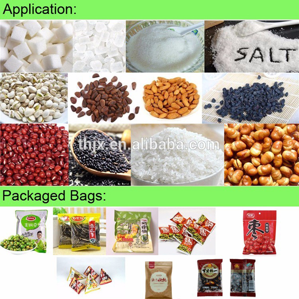 本产品适用于医药、食品、化工等行业松散状无粘性颗粒物品的包装。如医药冲剂、茶叶、植物种子、味精、咖啡、洗衣粉、方便面调味料、干燥剂和砂糖等。可以自动完成制袋、计量、充填、封合、分切、计数、热压批号或打印日期功能。